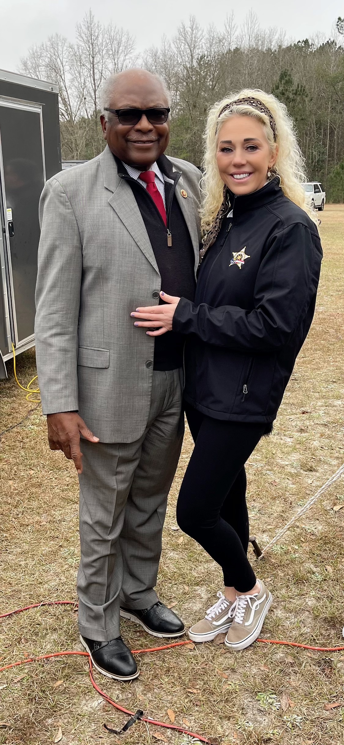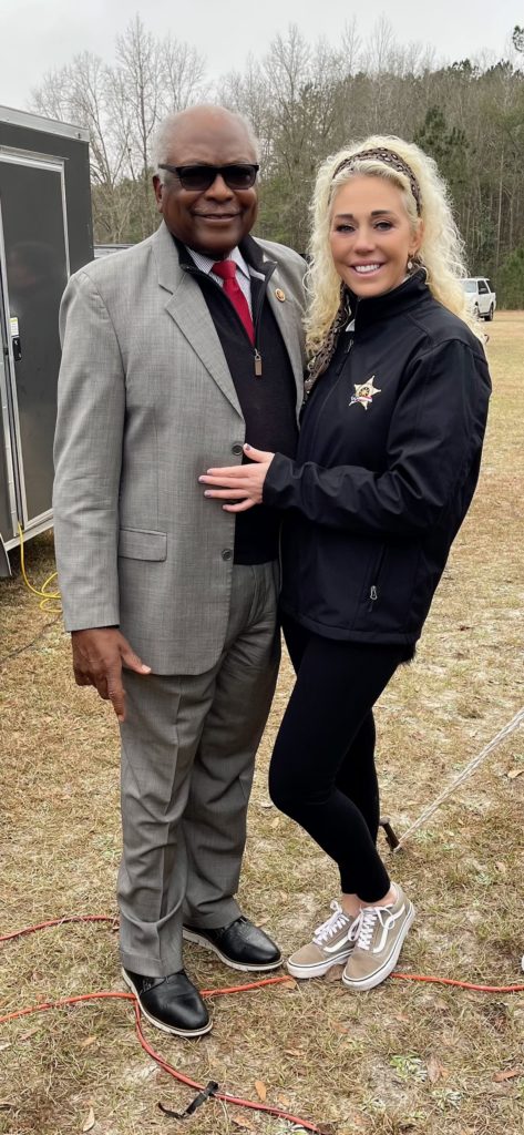 That’s majority whip Jim Clyburn – one of the most powerful men in Washington, D.C. – attending a black history month event in Hampton, S.C. on February 27, 2021. Photographed at his side? Dana Boyles of Hampton.