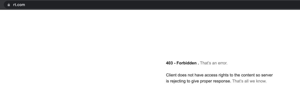 That is the home page of RT.com, formerly known as Russia Today. Clearly, somebody doesn’t want American audiences seeing the “other side” of the Ukraine war propaganda.
