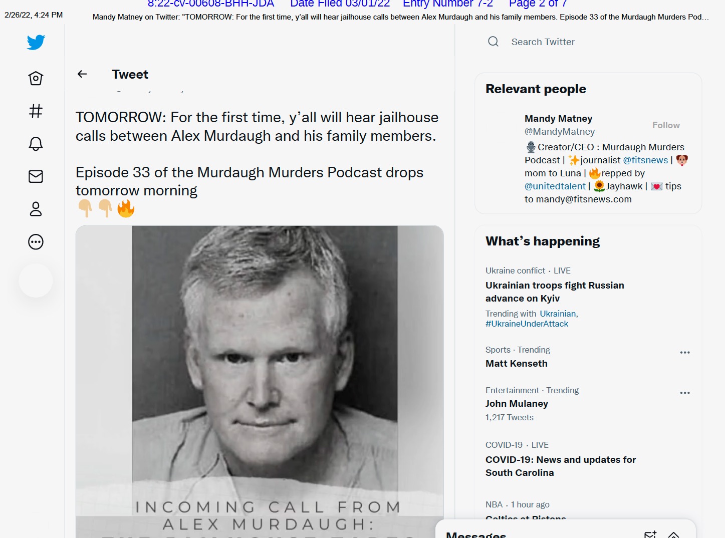 Harpootlian and Griffin filed a lawsuit Monday in U.S. District Court in South Carolina trying to block the release of any future calls. On Tuesday, the “bulldog” duo stepped up these efforts – filing a motion (.pdf) seeking a “preliminary injunction” which would forbid the detention center from “disclosing to anyone the intercepted telephone communications between (Murdaugh) and others in response to a records request.”