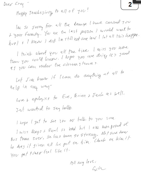 “You are the last person I would want to hurt and I know I did,” he said. “I’m still not sure how I let all of this happen.”