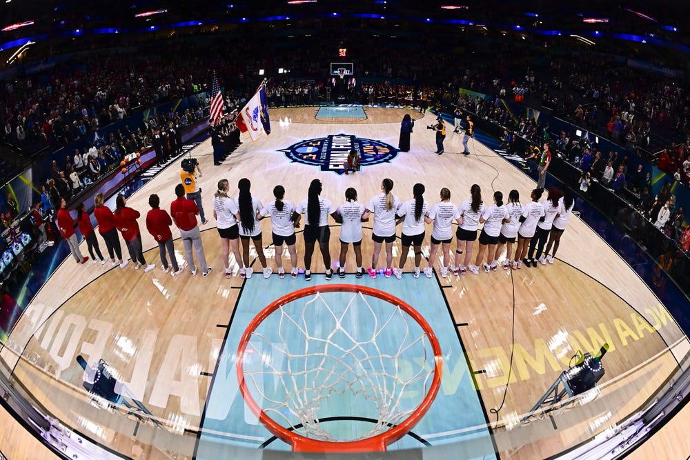 South Carolina has boycotted the anthem for over a year to “bring awareness to racial injustice in our country,” as Staley told Sean Hurd of Andscape last January. In fact, the team doesn’t participate in the anthem at Gamecock home games, and “if opposing teams choose to play the anthem during the time we’re in the locker room, then we choose to stay in the locker room,” Staley said.