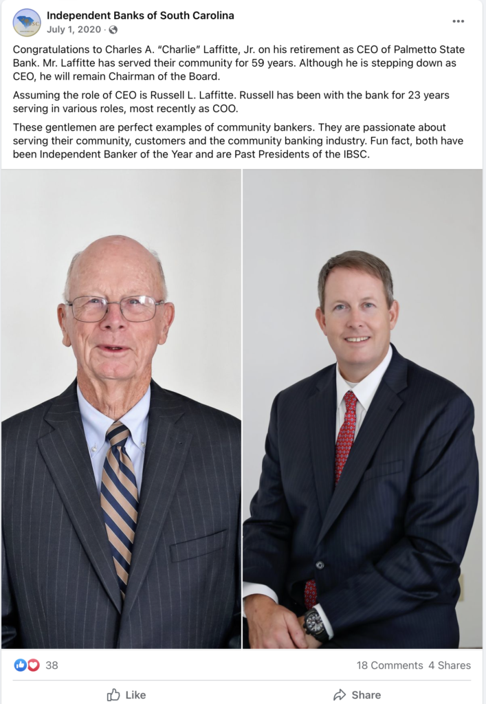 In 1955, his family took over Palmetto State Bank, which is based in Hampton.