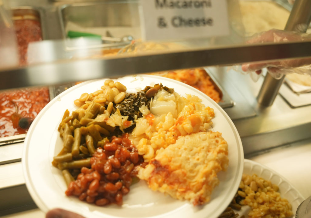 Enticed by the sight of the buffet and the aroma in the restaurant, I grew hungrier as I waited my turn. I don’t mind my food touching, and I like it piled high — I put as many colors, textures and options on my plate that would fit. I made it to a community table, had a seat and prepared to dig in.