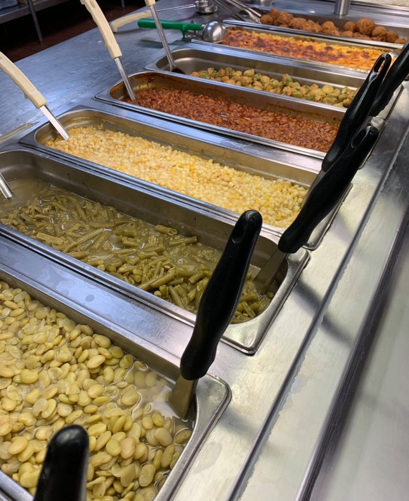 We serve home-style and delicious sides with a very wide range of options, such as collards, limas, green beans, corn, baked beans, macaroni and cheese, rice, hash, stewed tomatoes and pepper milk gravy. We have fresh pork skins every day and piping hot hush puppies. Our french fries are also a hit. Our coleslaw and unique marinated slaw are popular as well.