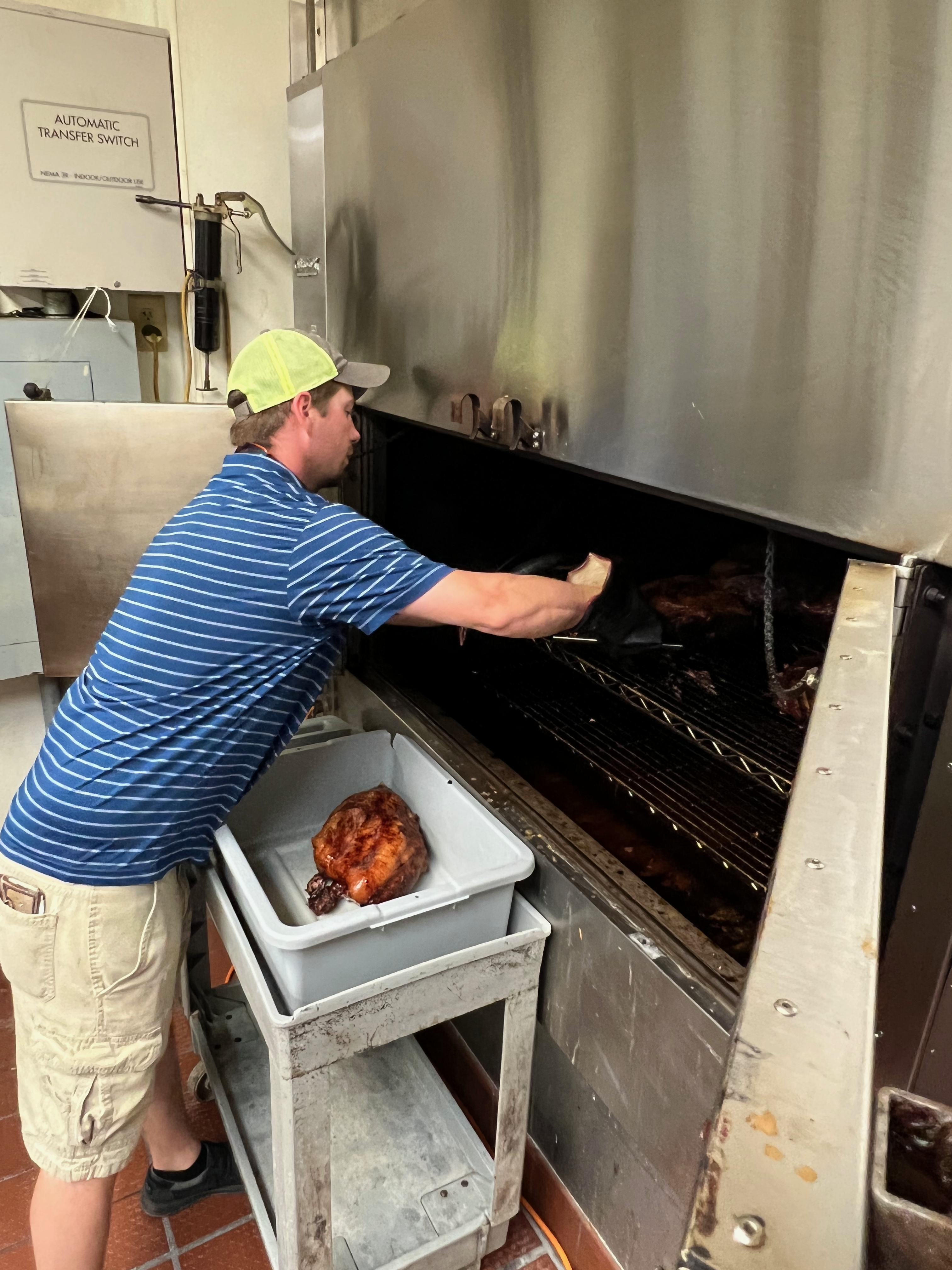 Riley Furman: I am the general manager of Farm Boy’s Barbeque. I have been here for over seven years. I was born in the great town of Chapin and also raised here by my grandmother and grandfather. I started at Farm Boy’s as a regular kitchen employee, working for the founder, Mr. Wells Gibson. When the current owner, Mr. Kim Kirby, took over the business in 2016 he didn’t change much about its operations. Through the years, I have moved up from the kitchen manager to my current position.