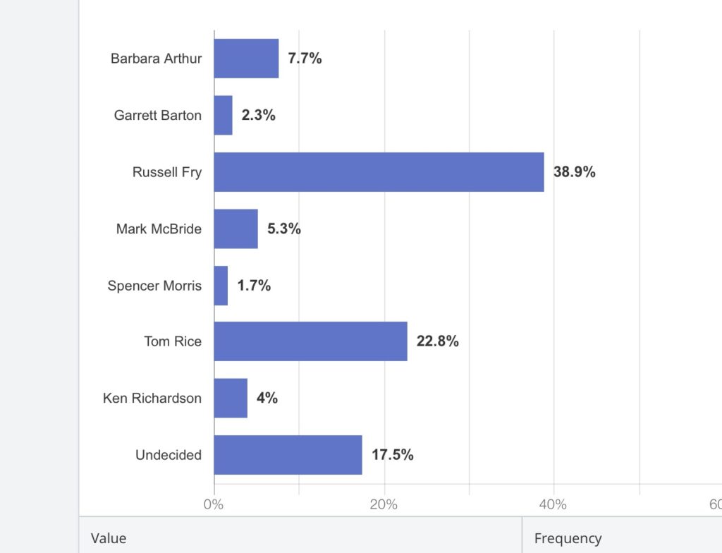So far, though, Rice’s broadsides against Fry do not appear to be having their intended effect. Assuming these poll numbers are legit – and assuming they hold – Fry appears to be a lock to finish in one of the top two spots when primary ballots are counted on June 14, 2022.