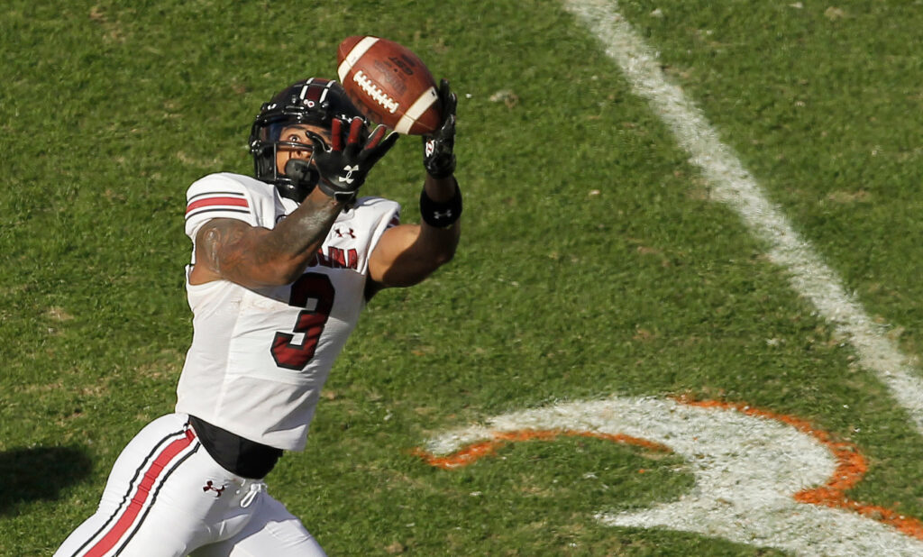 In the shadow of a seven-game skid in this long-running rivalry – not to mention the Tigers’ 40-game home winning streak (the longest active home winning streak in all of college football) – much-maligned starting quarterback Spencer Rattler hit junior wideout Antwane “Juice” Wells Jr. (above) in the flat for a five-yard gain to give the Gamecocks the game-clinching first down.