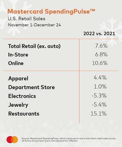 That sounds like a good number, but when you consider inflation clocked in at 7.1 percent on a year-over-year basis in November – and the Mastercard data doesn’t account for inflation – it means hardly any progress was made.