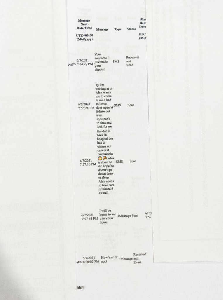 12:56 p.m. EST – Simpson testifies that Maggie texted her that Alex wanted her to come to Moselle on June 7, 2021. The State has completed re-direct.