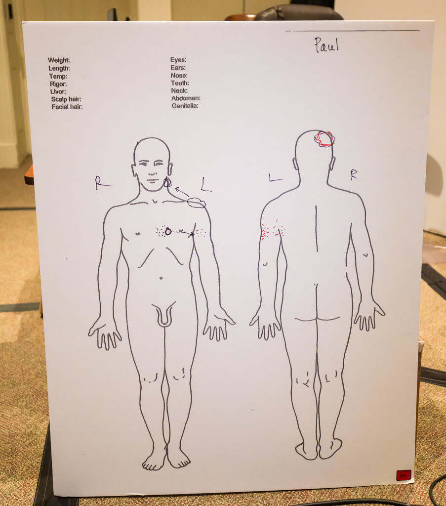 4:17 p.m. EST – The wadding from the shot to Paul’s chest got stuck in his chest cavity. Pellets exited from the left arm and back and there was stippling on Paul’s body. Stippling is burns caused by gunpowder from a shot fired close in proximity. They can’t say exactly how close, but states the standard is within 2-3 feet.