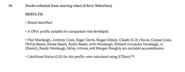 12:22 p.m. EST – Zapata is now reviewing swabs collected from the steering wheel of Murdaugh’s Suburban.