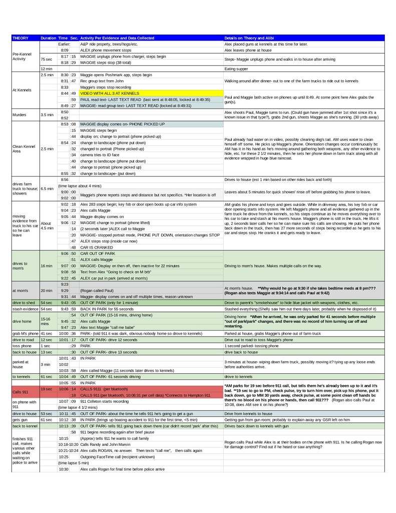 8:05 a.m. EST – Courtesy of the amazing Brandi Churchwell here is a timeline based on evidence introduced at the trial thus far that has been drawing tons of attention on social media. Brandi is planning on releasing an updated one soon … so be on the lookout for that!