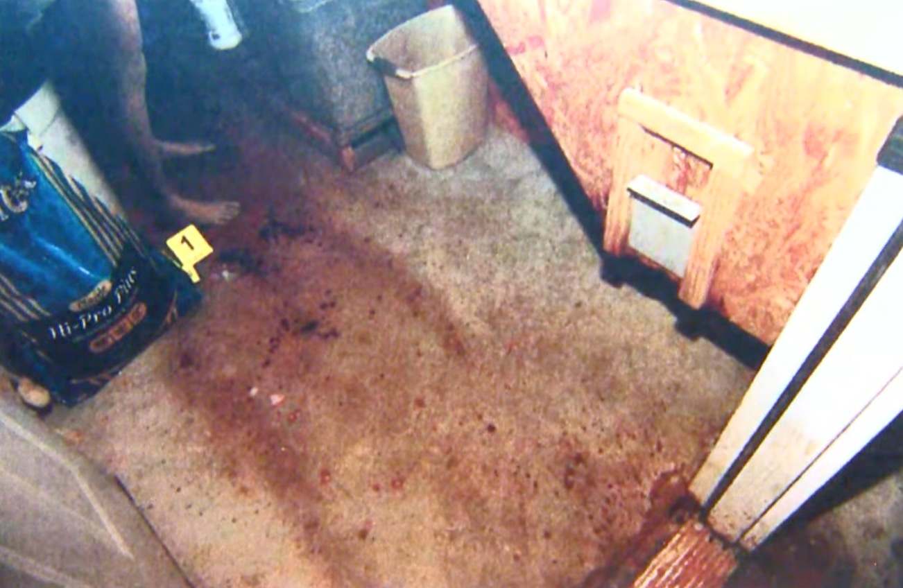 10:36 a.m. EST – Kinsey describing “ninety degree droplets” of blood belonging to Paul Murdaugh showing up on the floor of the feed room – moving slowly from the center of the room to the door.