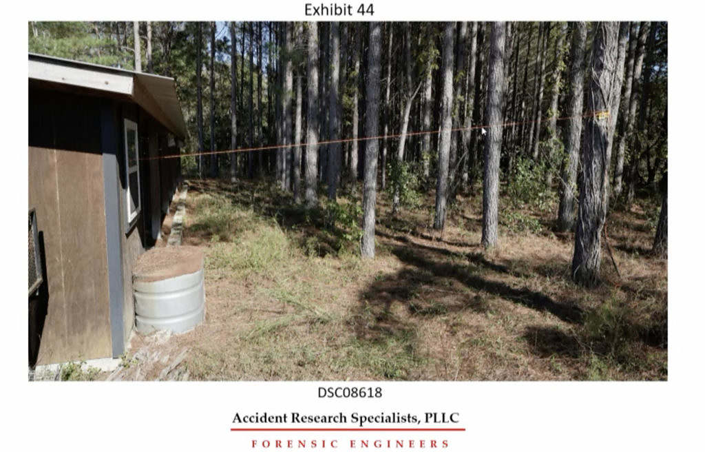 12:11 p.m. EST – Sutton is walking Dick Harpootlian through a powerpoint presentation on bullet trajectory. He states a bullet hole in the side of the quail pen is interesting because it had an upward trajectory and locked the location of the shooter in for at least that one shot.