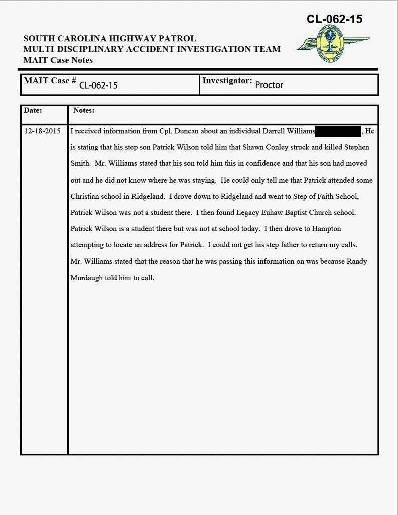According to case notes contained in the MAIT report, Williams stated “the reason he was passing this information on was because Randy Murdaugh told him to call.”