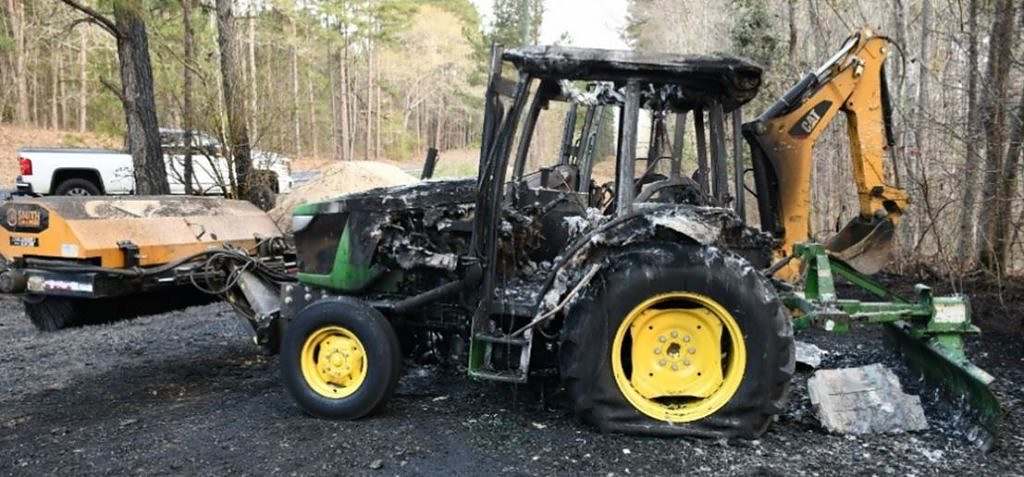 The tractors belonged to a road construction crew, according to a SLED news release. They were discovered in flames after a passing motorist reported a fire in the area at approximately 7:55 p.m. EST on March 16, 2023. The tractors – which were the property of Lynches River Contracting, Inc. – were parked at a staging area on U.S. Highway 52 near Cheraw, S.C. where they were “being used to repave that same highway,” according to the release.