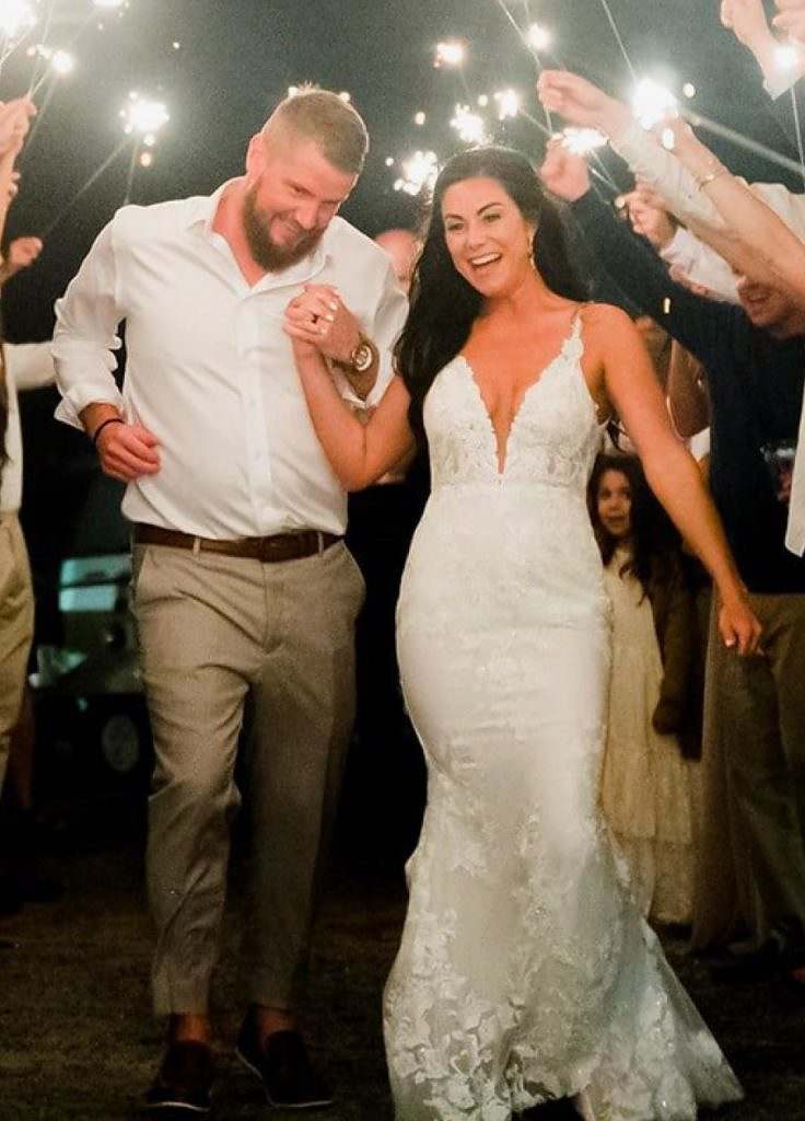 Hutchinson and Miller pulled away from their wedding reception at the Pelican Watch Pavilion just before 10:00 p.m. in a golf cart adorned with a ‘Just Married’ sign. They were being transported to a nearby rental property by Benjamin Garrett – Aric’s brother-in-law – and Brogan Garrett, his nephew.