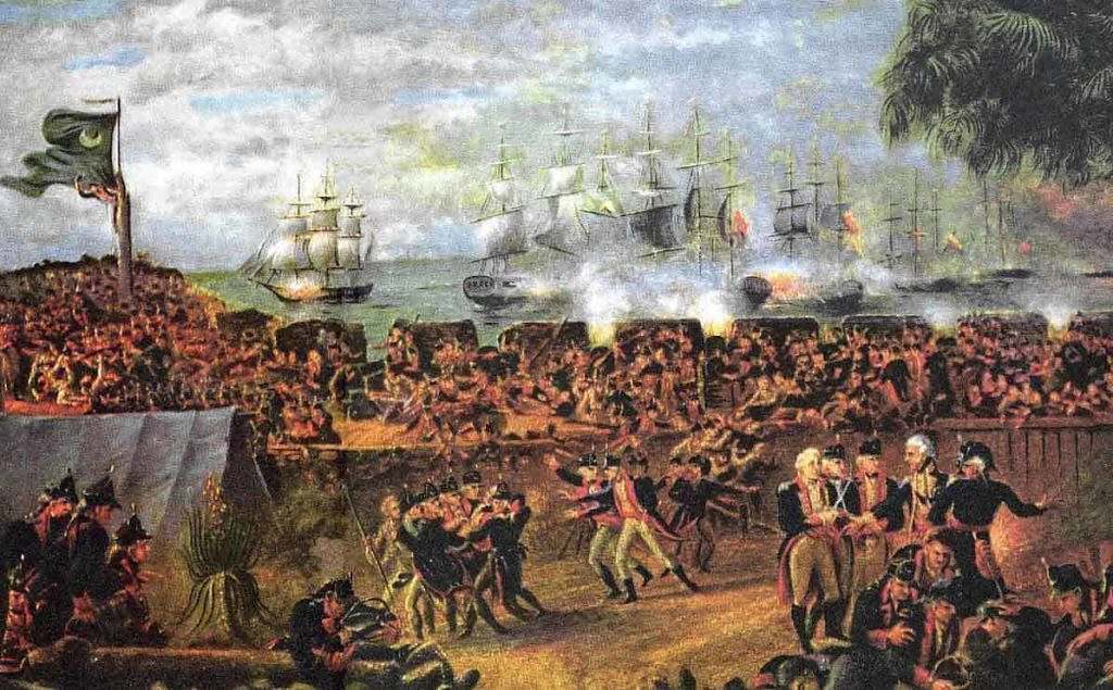 The fighting continued until nightfall when the Brits finally pulled back under cover of darkness. In one of the war’s most lopsided victories, a handful of Colonial troops had killed and wounded 220 Englishmen (including admiral Parker), damaged four warships, and had caused a fifth to run aground and be scuttled.