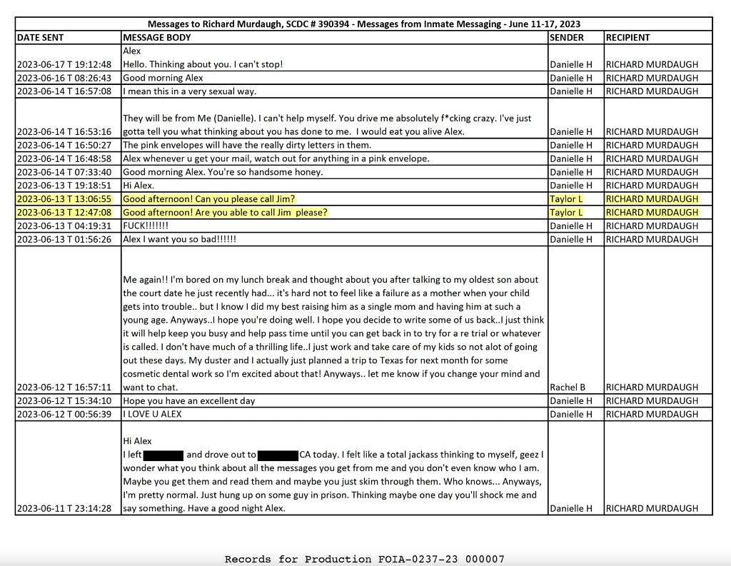 Of interest? Ever since Murdaugh was assigned to SCDC on March 3, 2023 following his convictions, this news outlet – specifically our amazing research director Jenn Wood – has submitted regular Freedom of Information Act (FOIA) requests seeking access to his communications.