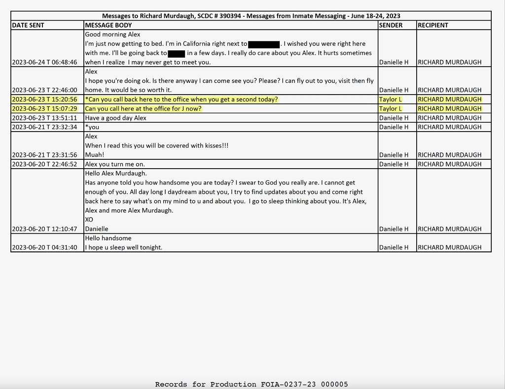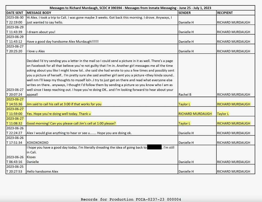Wood received the latest response from SCDC earlier this week, and for the first time it contained records which revealed Murdaugh was sending messages to people as opposed to merely receiving them.