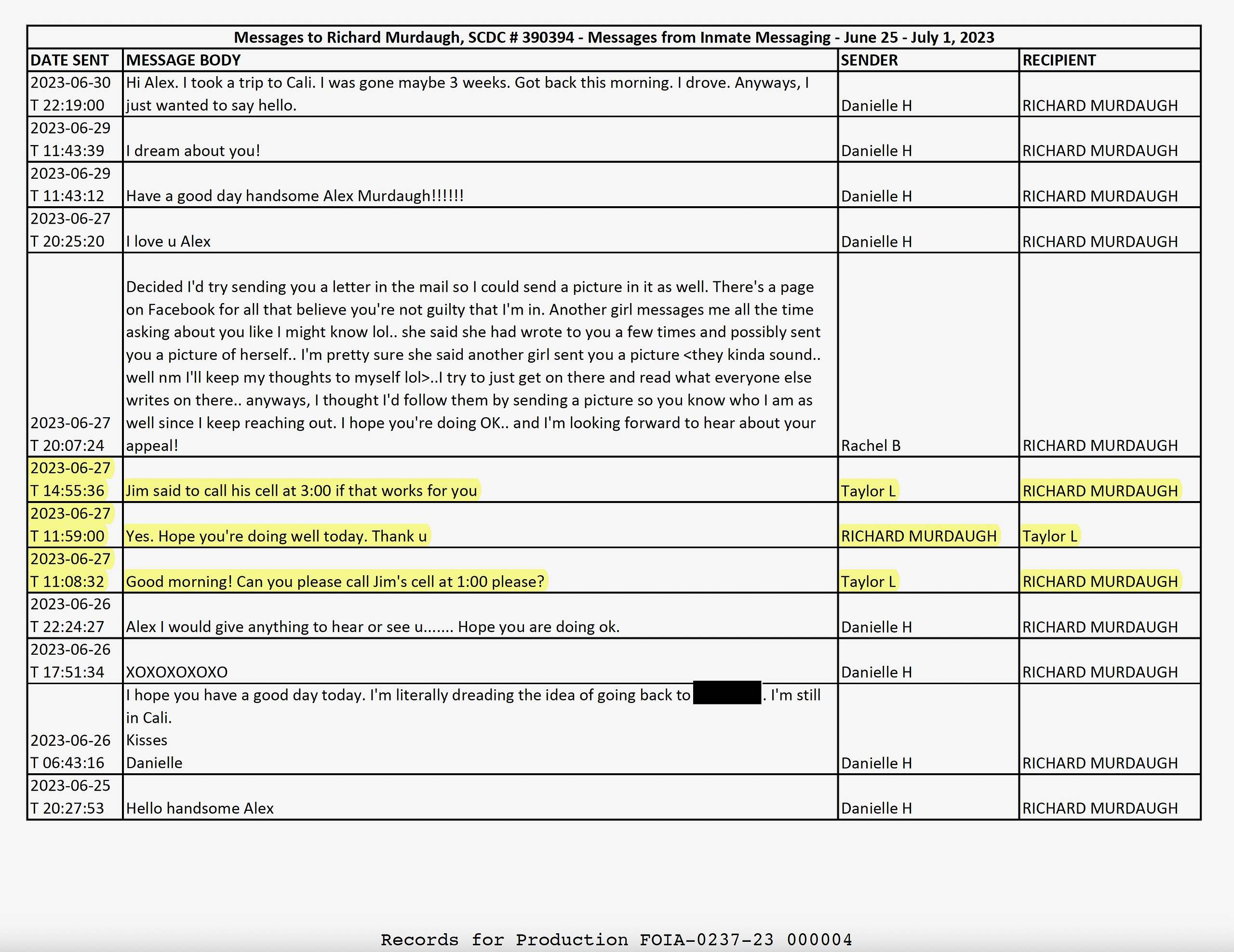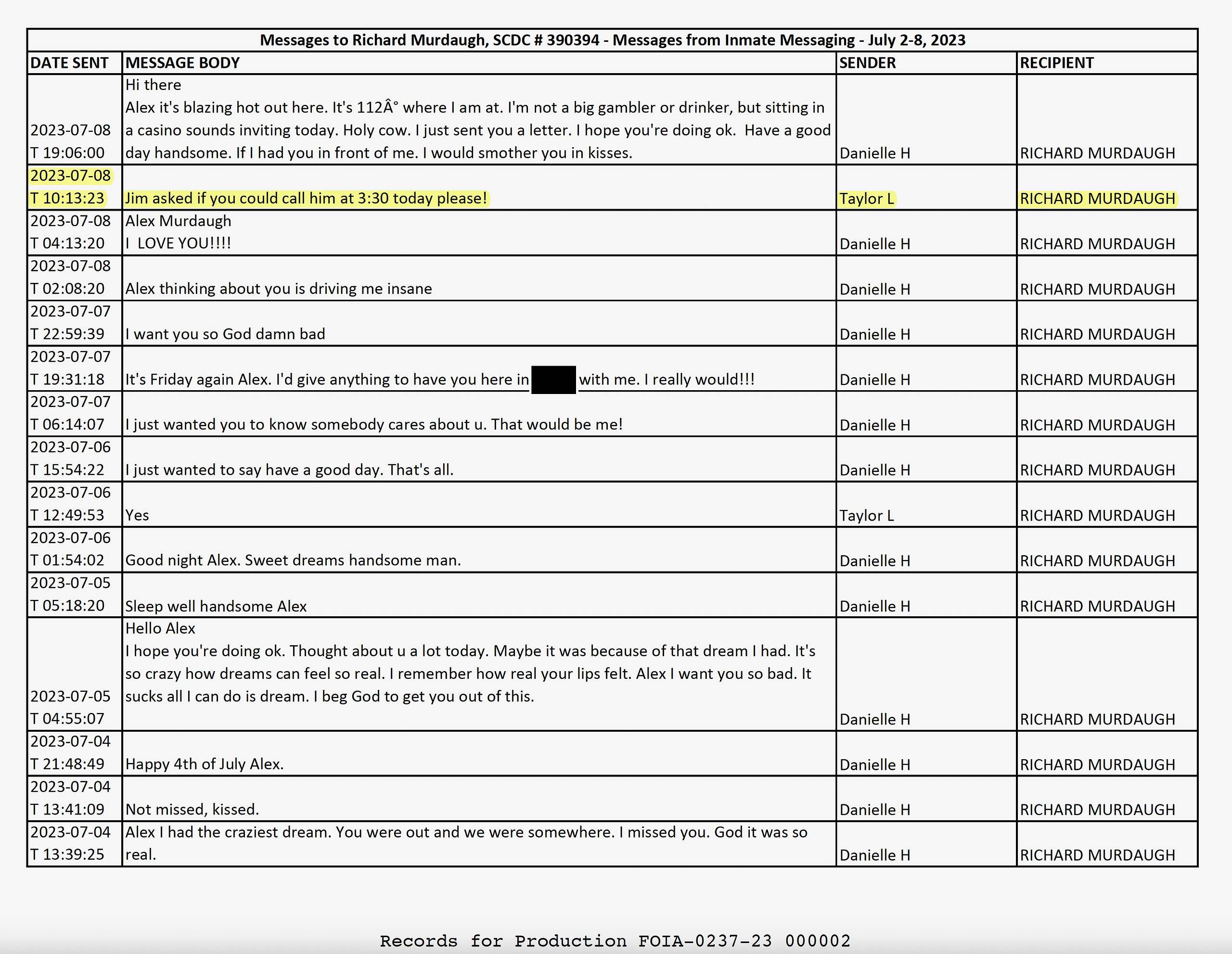 As you can see in the highlighted messages above, Murdaugh traded multiple messages with a “Taylor L” regarding communications with “j,” “jim” or Jim.”
