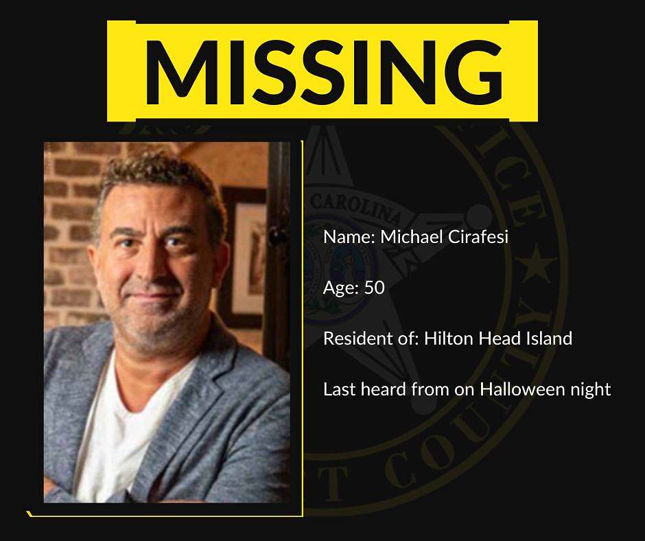 According to the Beaufort County Sheriff’s Office (BCSO), Cirafesi hasn’t been heard from in nearly a week and hasn’t been seen in more than a week. While no evidence of foul play has been disclosed, investigators said Cirafesi is considered “endangered” and there is “concern for his safety.”