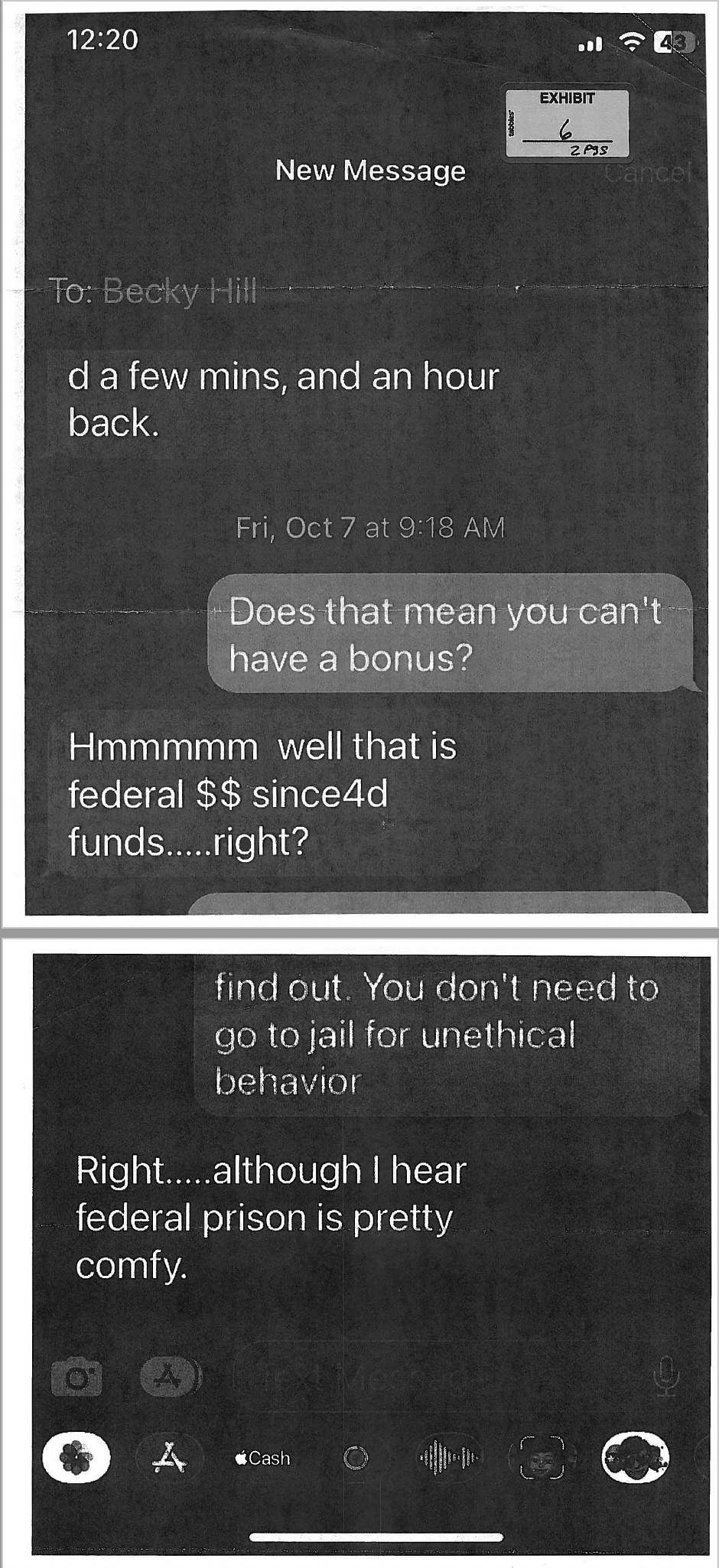 One of those accounts is the funding stream referenced in the text exchange between Hill and her former employee.