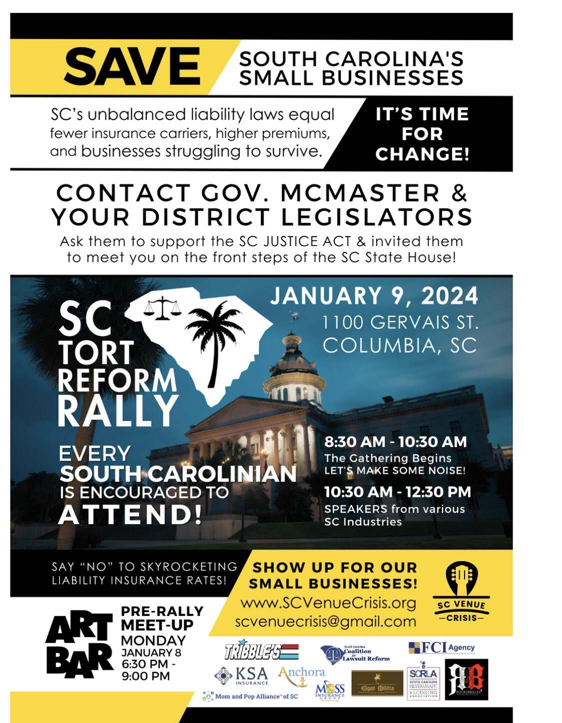 “South Carolina’s unbalanced liability laws equal fewer insurance carriers, higher premiums and businesses struggling to survive,” a flyer (.jpeg) for the event noted. “It’s time for change!”