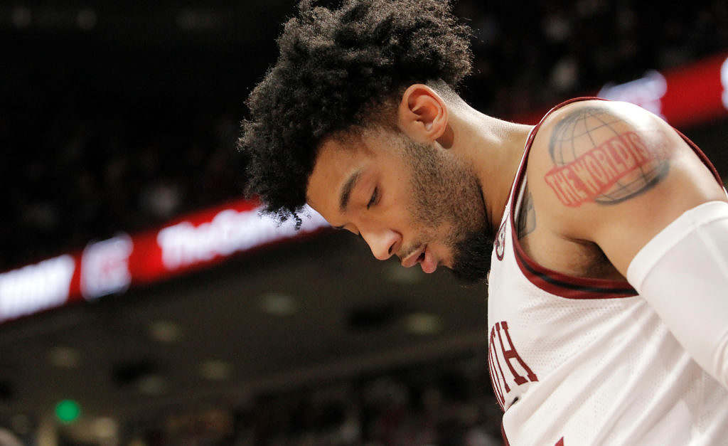 While Mack may have muffed that particular play, the 6-foot-8, 260-pound forward did pretty much everything else right for the Gamecocks – leading his team with eighteen points and nine rebounds. He also nailed a clutch three-pointer with only 55 seconds left on the clock – one of two late deep bombs that should have sealed the deal for South Carolina.