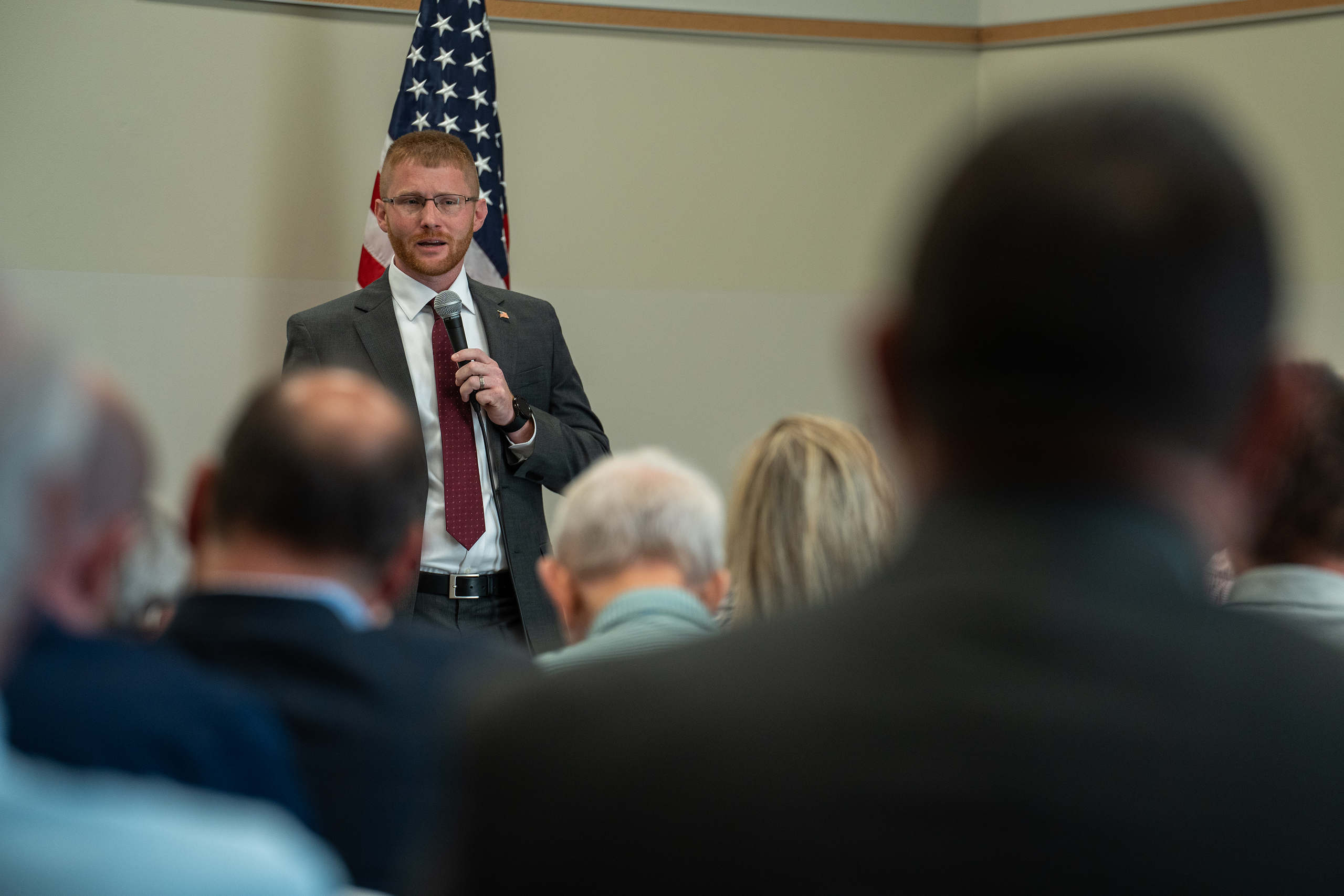 LEO Chris Wilkes addressing voters on Thursday, May 23, 2024. (Andrew Fancher)