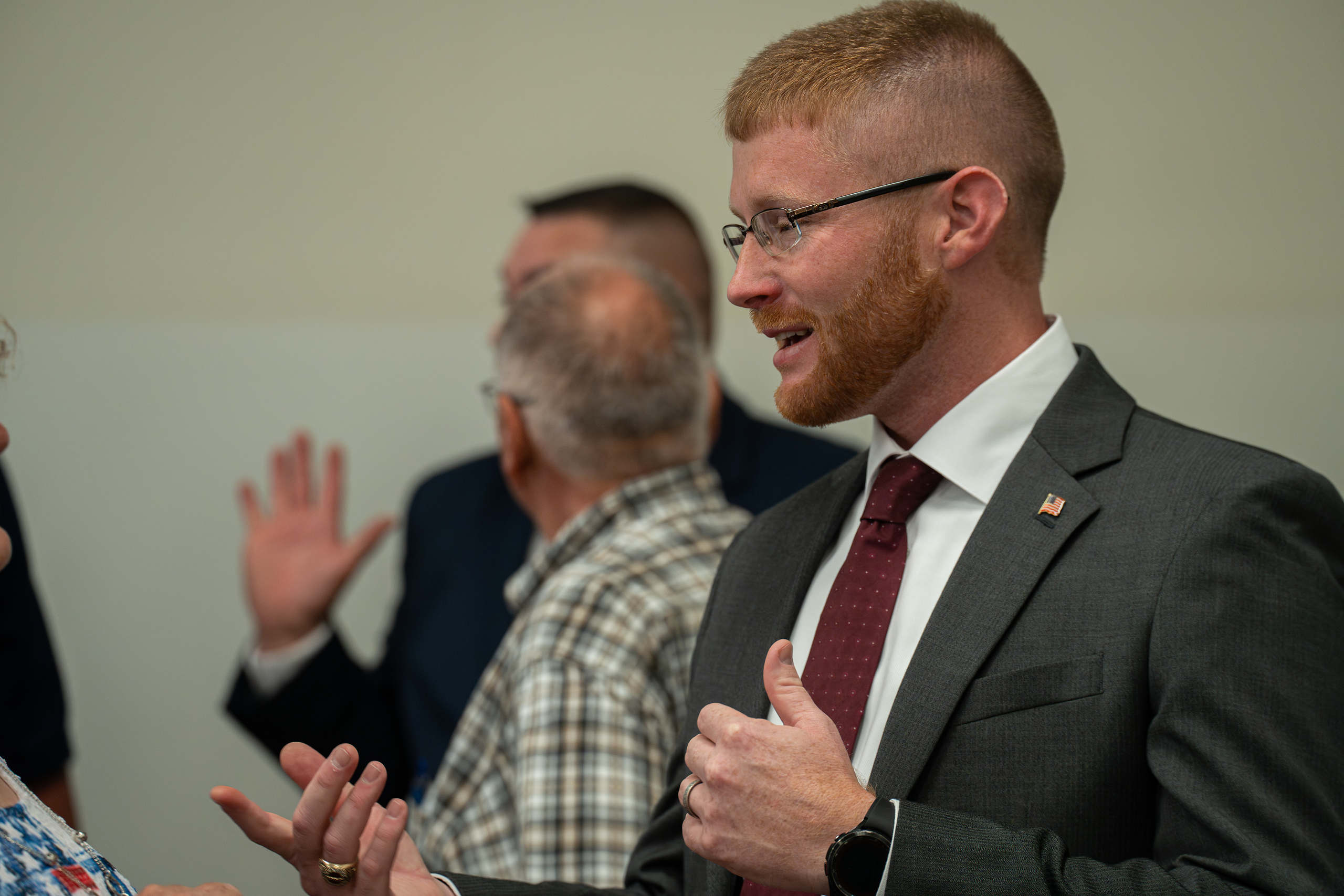 Chris Wilkes interacting with voters on Thursday, May 23, 2024. (Andrew Fancher)