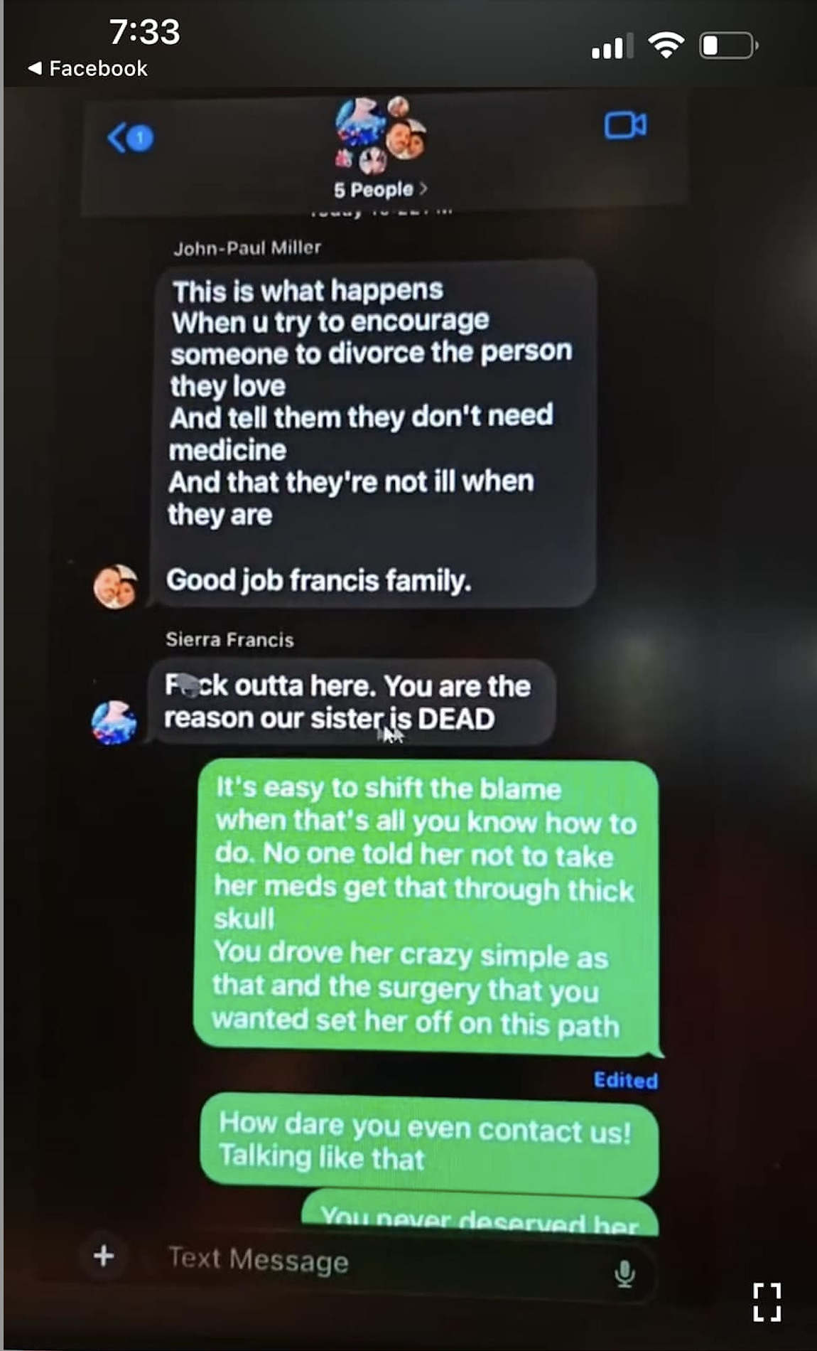 According to Francis, before the family even had time to grieve her sudden loss they were thrown into “fight mode” after receiving a text from Miller around midnight the day Mica died. The text bluntly informed them that Mica had died – and that they were allegedly to blame.