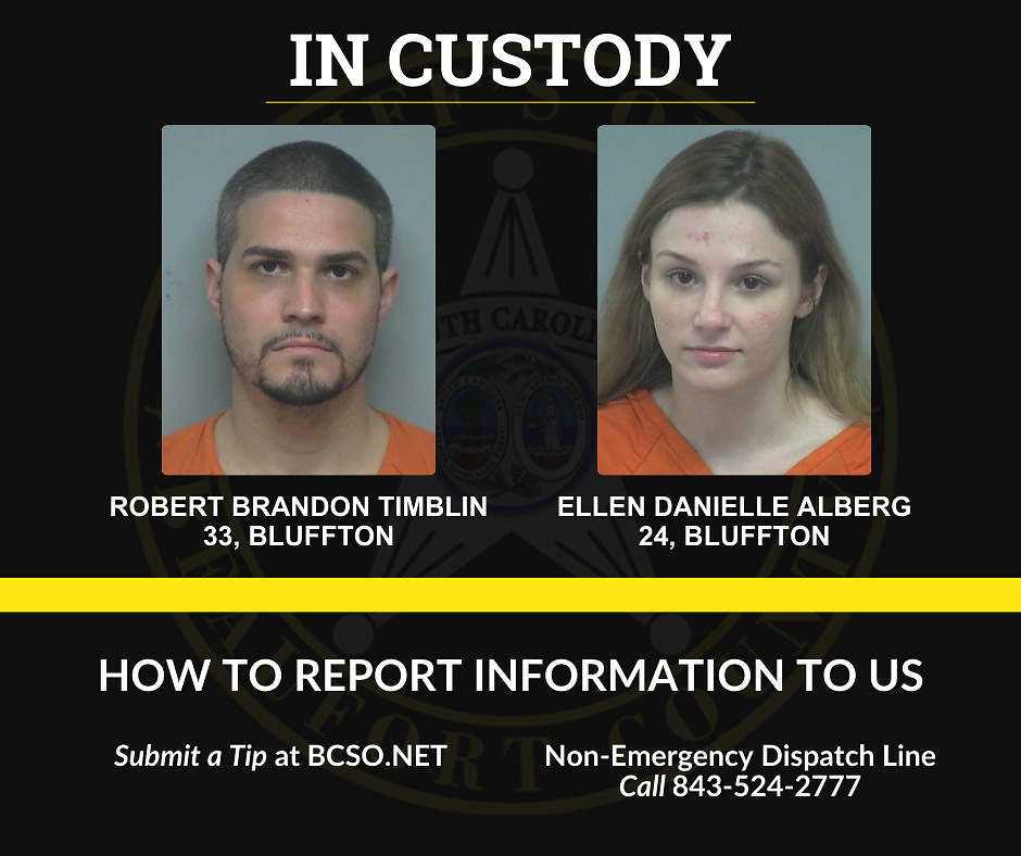 Timblin and Alberg were booked at the Beaufort County detention center. Their cases will be prosecuted by the office of S.C. fourteenth circuit solicitor Duffie Stone.