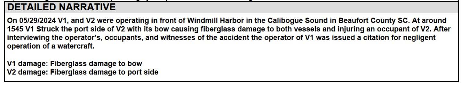As previously reported, Turner was charged with a watercraft violation on June 7, 2024 after SCDNR officials stated he failed to report the accident as required. According to Beaufort County court records, Turner paid a fine of $1087.50. The case was disposed of June 25, 2024 by judge Erin Gentry Vaux.