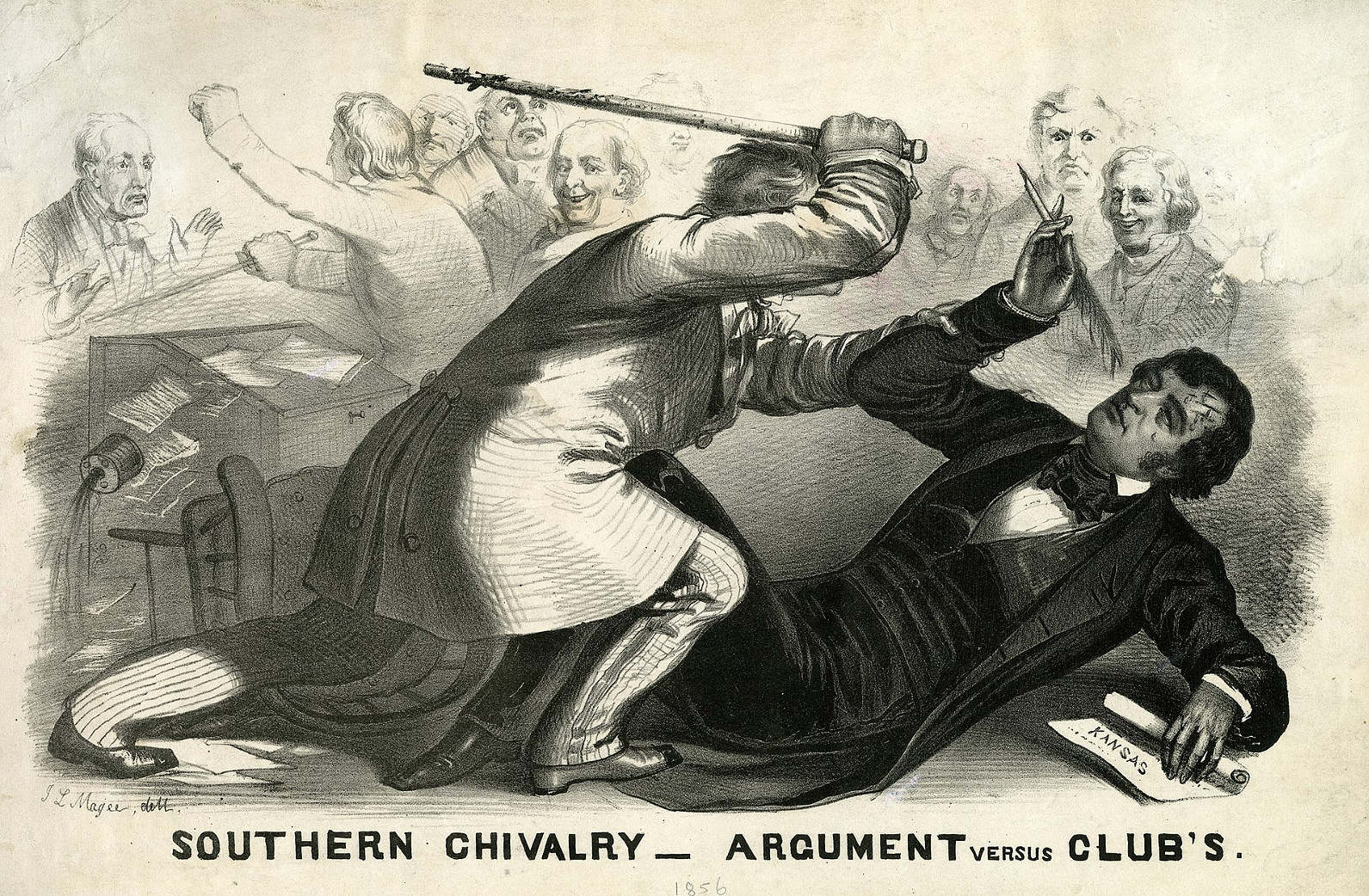 I would argue it was not Sumner, but Brooks who “shattered Senate decorum” by attacking an unarmed man with such viciousness, he bloodied himself during a frenzied upswing of his splintered cane.
