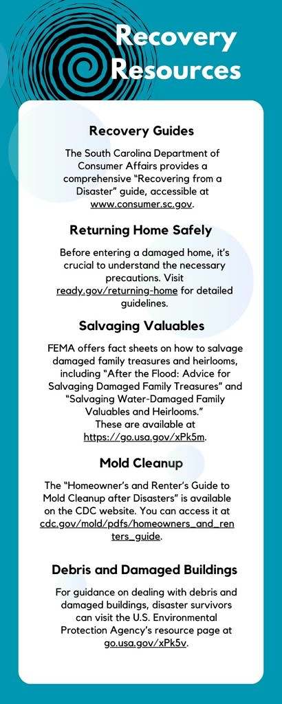 As disaster recovery efforts get underway, SCEMD is also offering the following guidance: