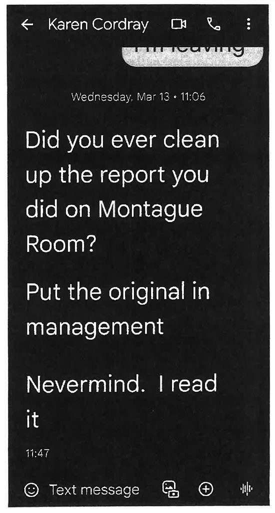 “Did you ever clean up the report you did on Montague Room?” Cordray texted Ryan, according to exhibits contained in his filing.