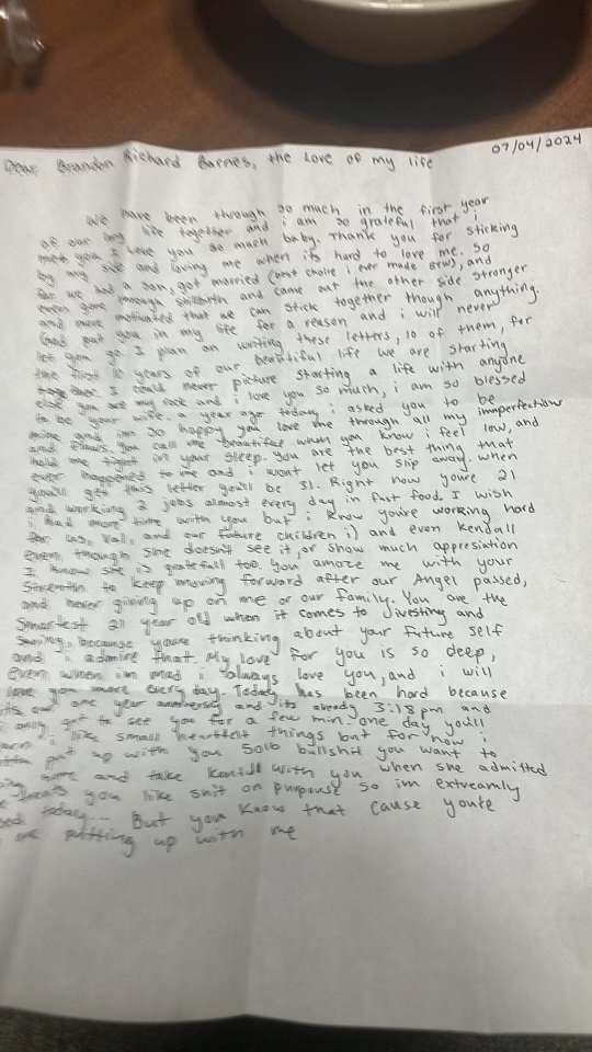 “Today has been hard because it’s our one-year anniversary, and it’s already 3:18 p.m., and I’ve only gotten to see you for a few minutes,” she wrote. “One day, you’ll see that I appreciate small, heartfelt things, but for now, I put up with the heavy burdens you carry, like working and taking Kendall with you, even though she admitted she treats you poorly on purpose. I’m extremely mad today, but you know that, and you’re still putting up with me.”