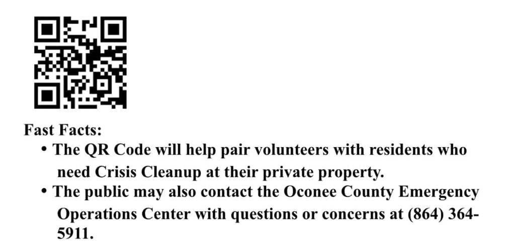 Damage may be reported to Oconee County Emergency Services via phone, online or by utilizing a QR code.