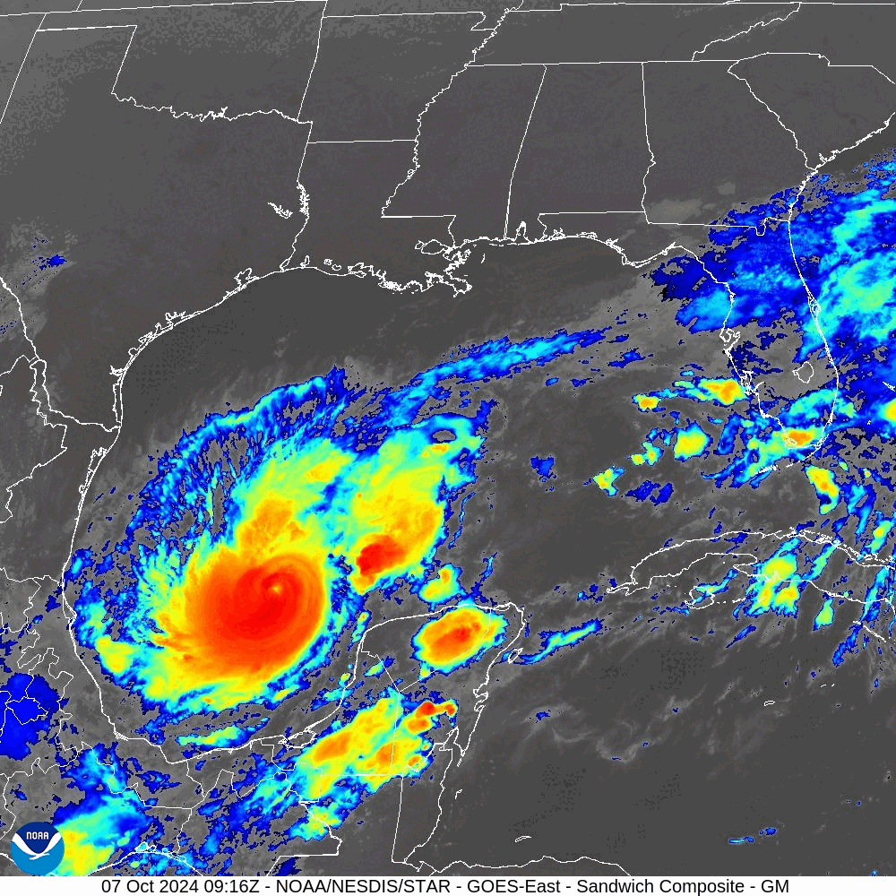 The only good news? Compared to Helene, Milton is (for the moment) a much more compact storm. Hurricane-force winds extend outward just 30 miles from its center while tropical storm force winds extend outward only eighty miles. That’s less than a third the size of Helene’s wind field upon her landfall.