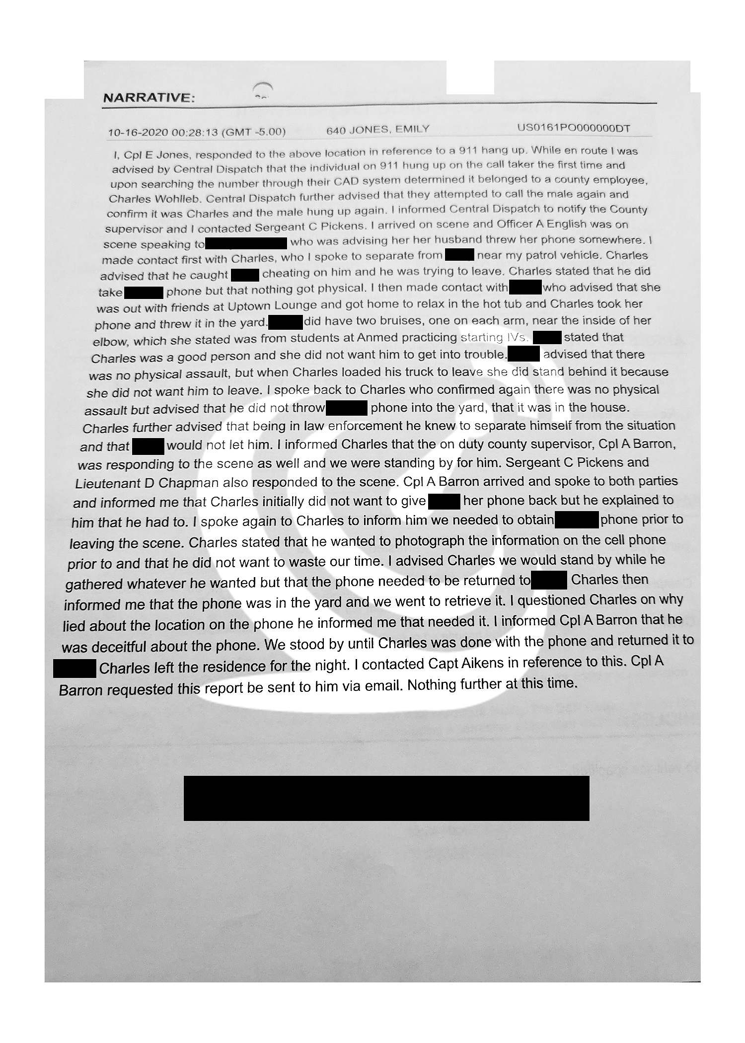 Emphasis on Wohlleb’s testimony, as APD ordered him to retrieve the aforementioned cell phone… from the backyard. After being exposed as a “liar,” the responding officer accused Wohlleb of “deceit” and notified her superiors of the questionable conduct.