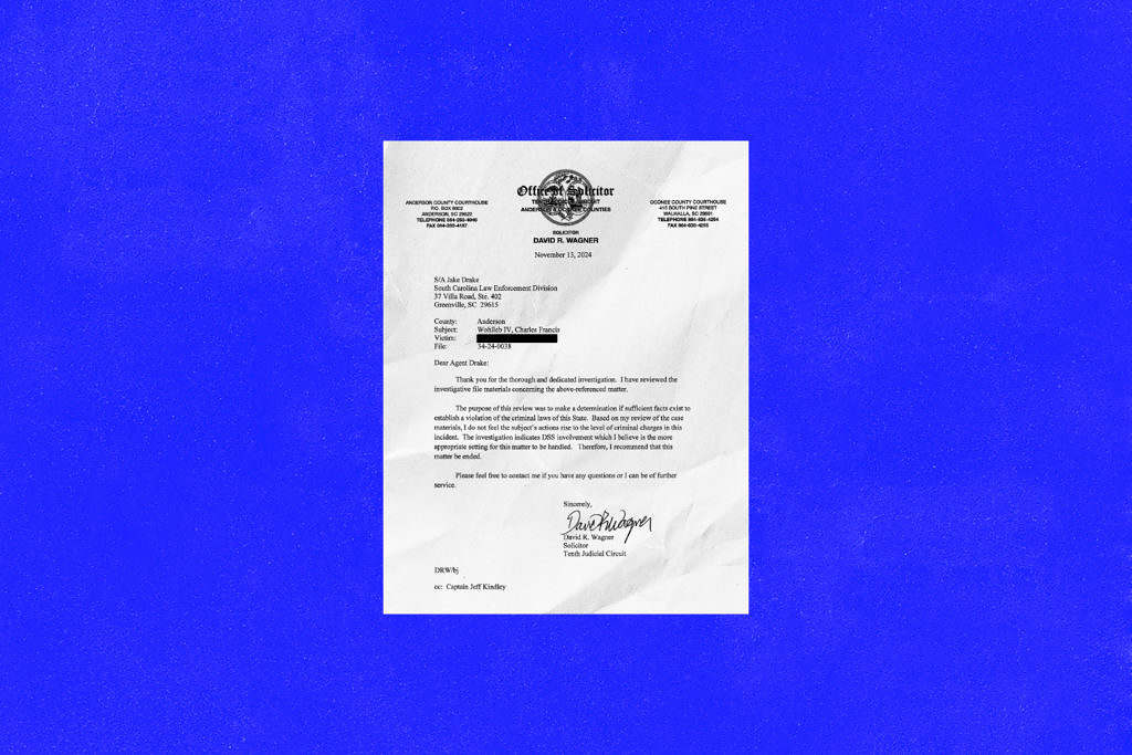On November 13, 2024, SLED’s investigation was effectively closed by Wagner. According to the exiting solicitor, Wohlleb’s handling of Charlie “was not criminal” and best left to the S.C. Department of Social Services (SCDSS) and/or Anderson County Family Court.