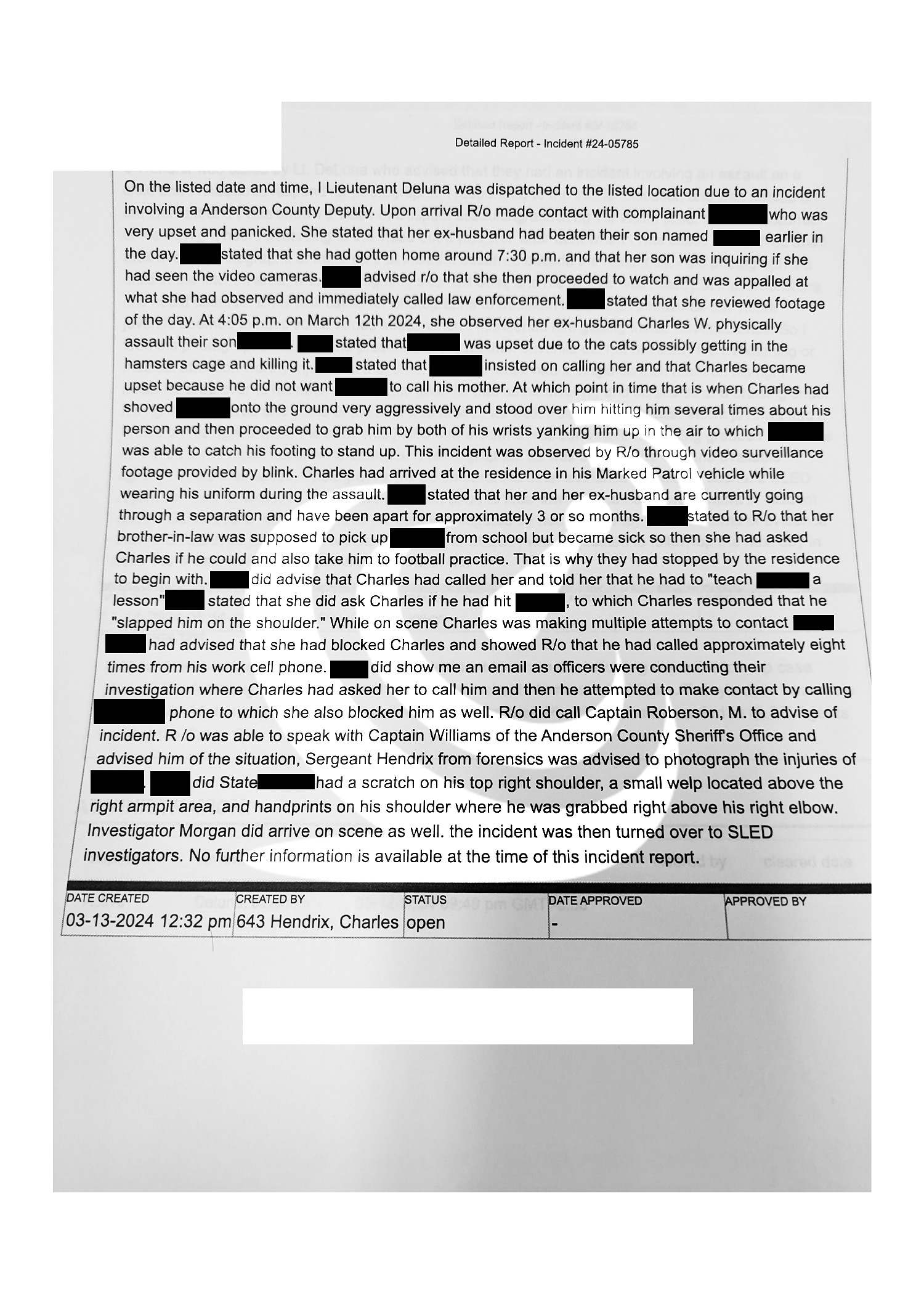 “Two SLED agents arrived and took the lead,” continued a responding officer. “Due to local law enforcement’s involvement in the incident, ACSO and APD wished to have the incident investigated by a neutral agency… All items of evidence… will be forwarded to SLED (sic).”