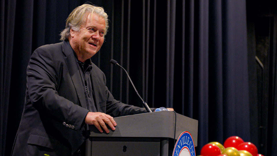 Bannon, the 3 times divorced 72 year old elderly man whines in South Carolina to supposed conservatives. LOL