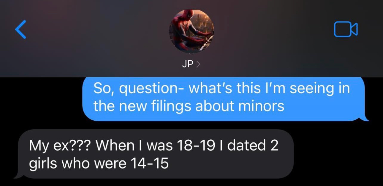 As part of his ongoing investigations into Miller, independent content creator Robbie Harvey obtained some of John-Paul Miller’s text messages – and at least one of them could be read as supporting facts presented in the Jane Doe lawsuits. In it, Miller claimed to have dated 14 and 15 year old girls when he was 18 or 19 years of age.