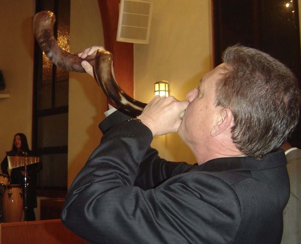 In the accompanying picture, is Daddy Miller funneling a beer or blowing a shofar?
