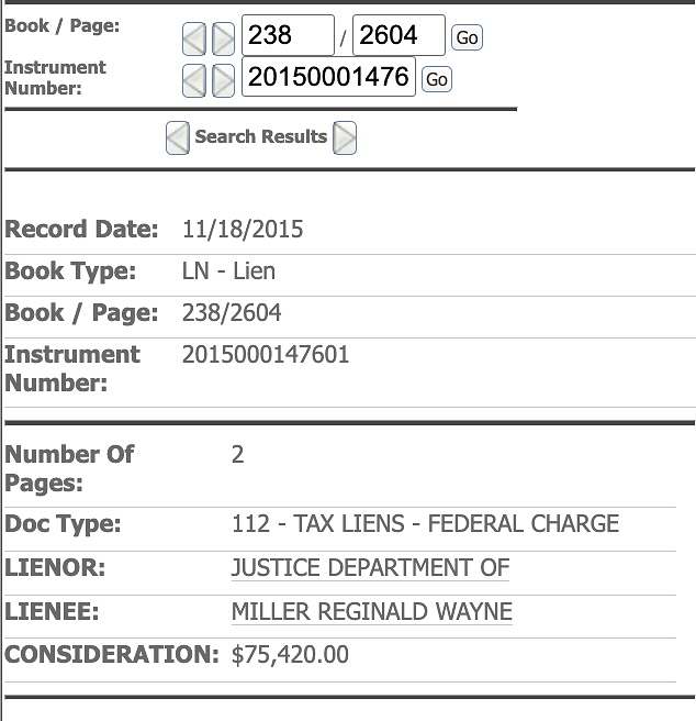 In 2015, Miller pleaded guilty in federal court to charges related to visa fraud and using foreign students for slave labor at Cathedral Bible College. At that time, Miller was ordered to pay restitution to the victims in the amount of $75,000 and court fees in the amount of $420. The federal government filed a lien against Miller on November 18, 2015. That lien remains unsatisfied.