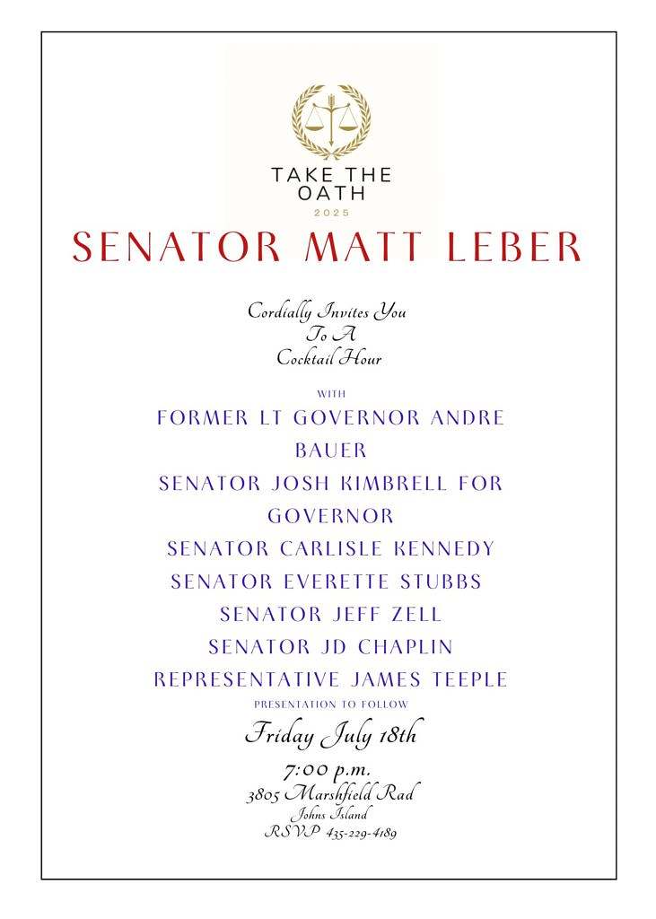 The launch of Leber’s PAC was held on July 18, 2025 – and included an appearance by former S.C. lieutenant governor and U.S. Senate candidate André Bauer, along with endorsements from state senators JD Chaplin, Carlisle Kennedy, Josh Kimbrell, Everette Stubbs and Jeff Zell and state representative James Teeple.