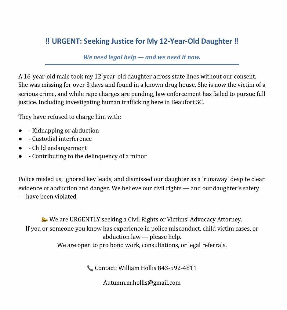 And if you are a South Carolina attorney willing to advise the Hollis family on what they can and cannot release in pursuit of justice for their daughter, reach out now. So far, this is a battle the family has had to fight on their own.