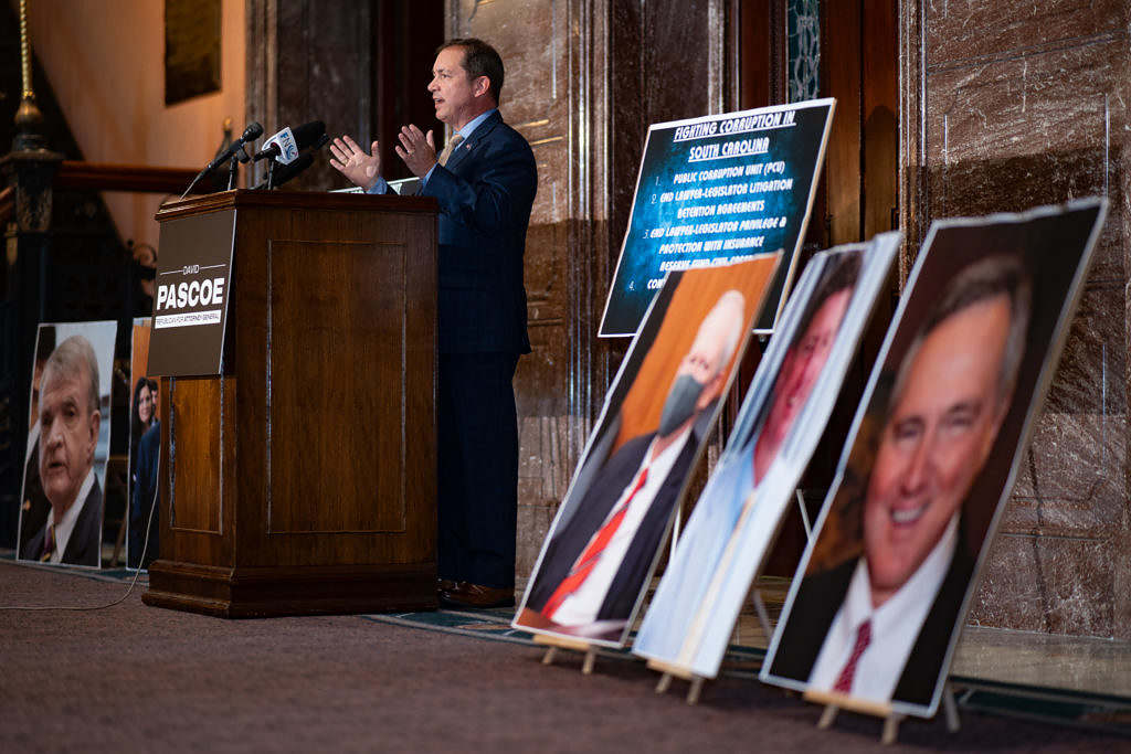 “I’m going to end the corruption on day one,” Pascoe said, pointing to the two chambers of the S.C. General Assembly and putting the lawyer-legislators who control those chambers on notice.